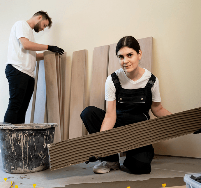 Begin demolition and structural modifications as per the approved plan. Proceed with construction, installation, and finishing work (flooring, painting, fixtures, etc.).